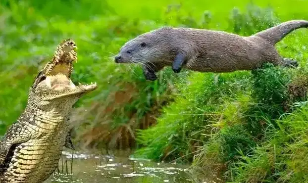 而美洲豹作为南美最强大的捕食者,在巨獭面前也占不到多少便宜。在水中,美洲豹不敢轻易涉足,巨獭则毫无惧色,一拥而上便能将其吓跑;即便在陆地上,美洲豹也未必有必胜的把握。曾有画面记录下美洲豹偷袭岸上睡觉的巨獭,却被巨獭挣脱并反咬一口,其强大的肌肉力量和斗志令人惊叹。