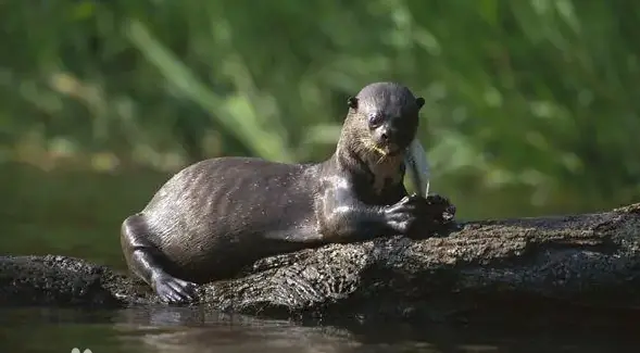 此外,各种慈鲷、鲈鱼等也是巨獭的盘中餐。在食物充足时,巨獭优先选择吃鱼,只有当鱼的数量不足时,才会考虑其他猎物,如螃蟹、乌龟、蛇,甚至偶遇的小凯门鳄。