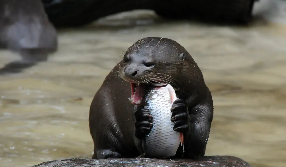 巨獭对猎物的偏好十分明显,最爱吃鱼。各种鱼类,包括大名鼎鼎的食人鱼,都是它们常见的猎物。除了食人鱼,巨獭常吃的鱼还有鲶形目的清道夫鱼、下口鲇等底栖性鱼类,这些鱼不怎么游动,相对容易抓捕。