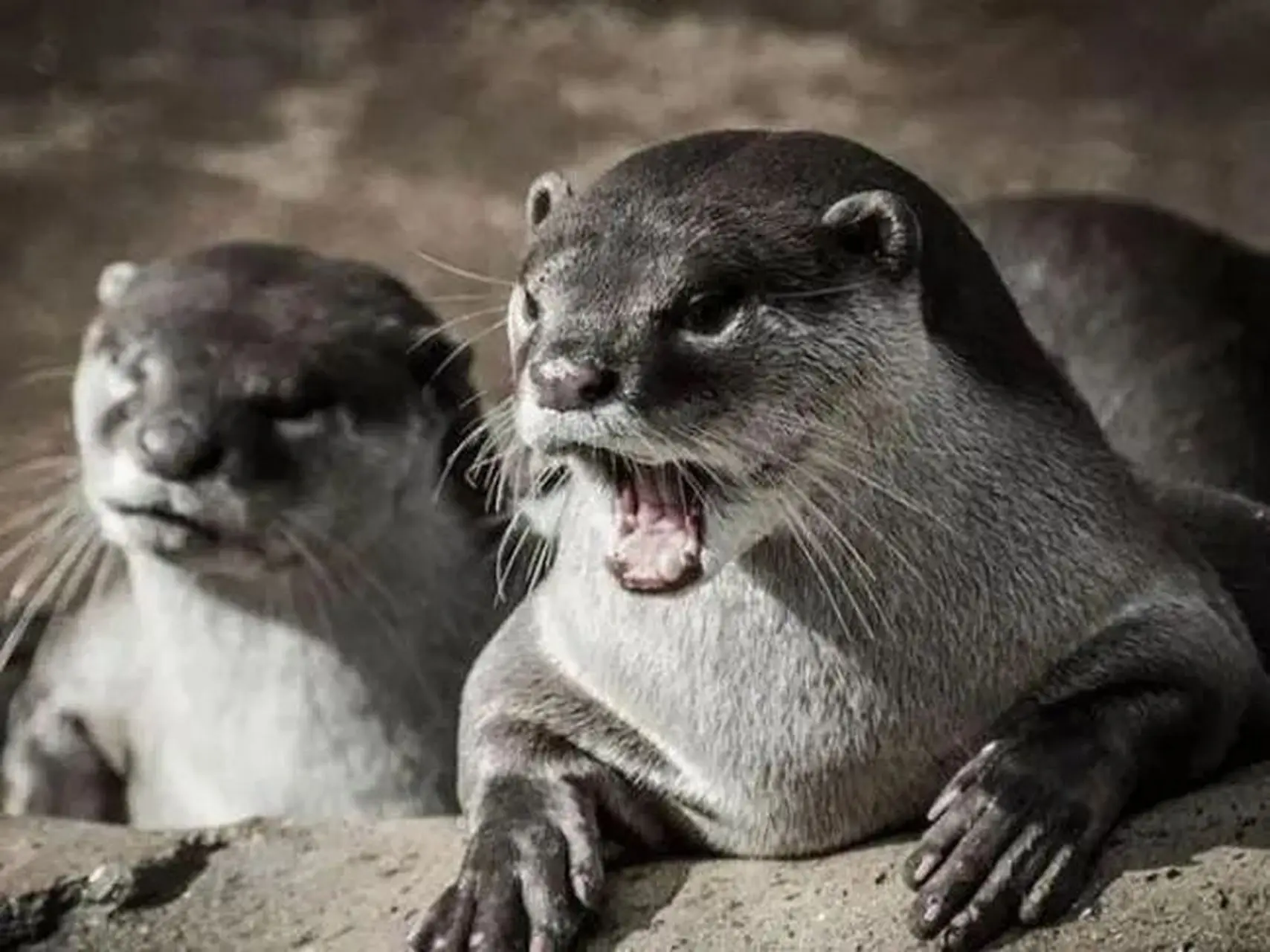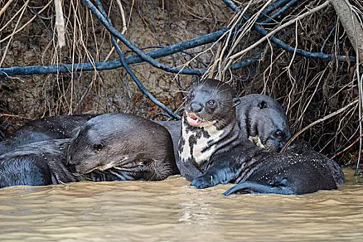 此外,巨獭的胡须特别灵敏,能够感知水流和水压的变化。在南美洲,许多水体较为浑浊,能见度差,胡须对于它们追踪猎物、识别环境就显得尤为重要。